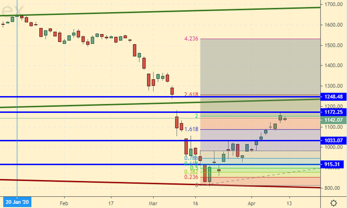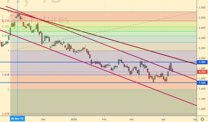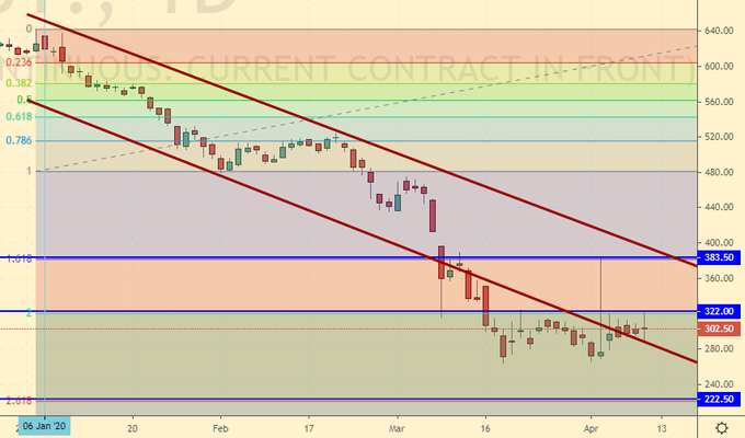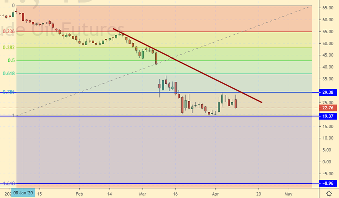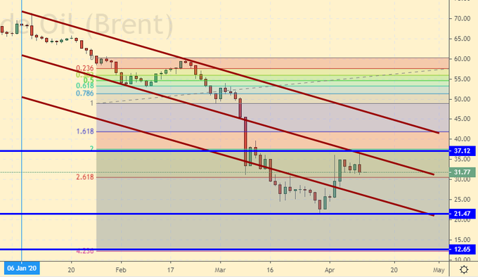 Вряд ли мы можем вести разговор о ценах выше 30.00 долларов в мае. Разве только в спешном порядке не будут подготовлены гигантские резервуары для хранения излишков, что действительно имело бы смысл, так как, только к осени ситуация с китайским вирусом начнет остывать.