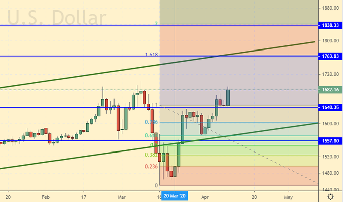 Сценарий роста: «сильный рост будет если только экономика США начнет схлопываться» — цитата прошлой недели. Уже 16 миллионов новых безработных за три недели. Это 10% трудоспособного населения страны. Это лонг по золоту.