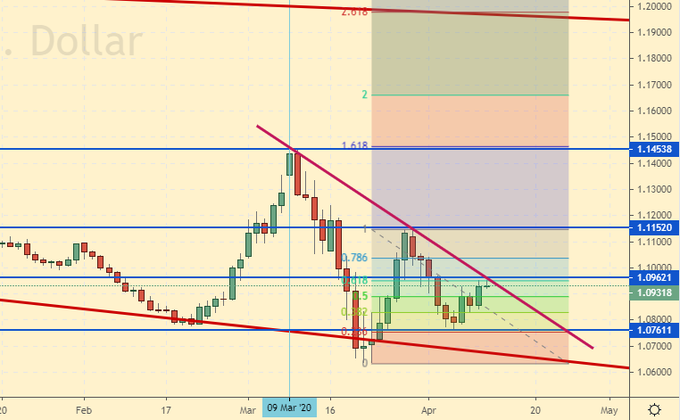 Сценарий падения: на фоне поддержки населению и бизнесу фиатные валюты на наших глазах переходят в разряд эфимерных. Шортим евро только после падения ниже 1.0800.