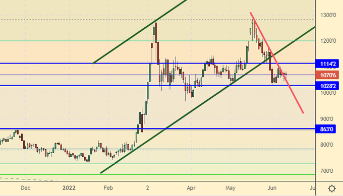 Сценарий падения: продолжаем считать, что от 10.200 было бы интересно войти в шорт. Продажи с текущих уровней возможны.