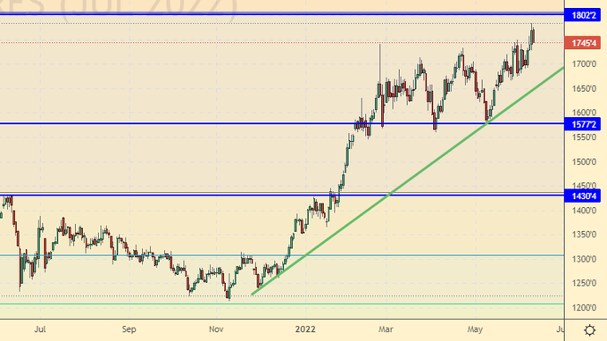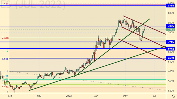Сценарий роста: рассматриваем июльский фьючерс, дата экспирации 21 июня. Будем держать открытые четыре недели назад лонги. Смотрим вверх.