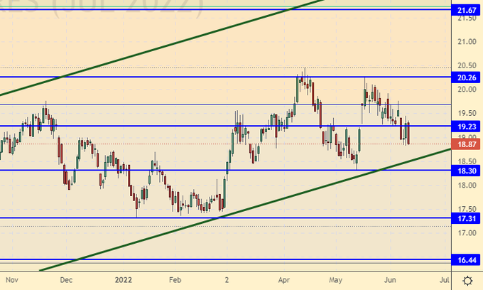 Сценарий роста: рассматриваем июльский фьючерс, дата экспирации 28 июня. Продолжаем воздерживаться от покупок. На европейском рынке паники нет, в США также картина успокаивается.
