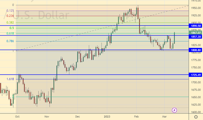 Сценарий роста: учитывая падение банка в США можем предположить, что мы дойдем до 1890, однако подняться выше не получится, так как ФРС не закончила с повышением ставок.