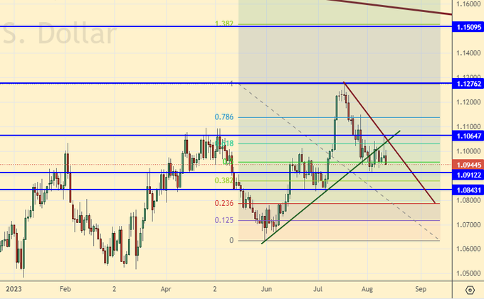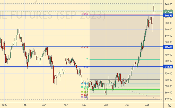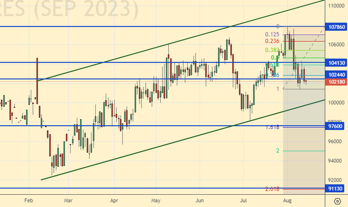 Сценарий роста: рассматриваем сентябрьский фьючерс, дата экспирации 29 августа. Ничего не изменилось за неделю. Продолжим стоять в лонгах.