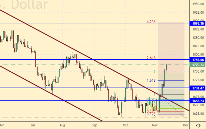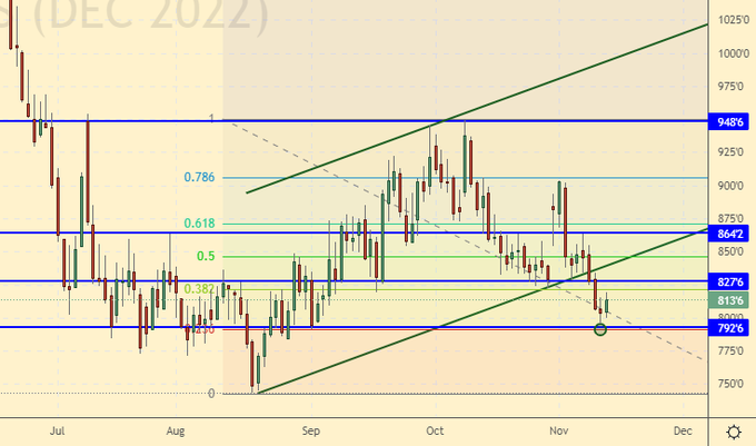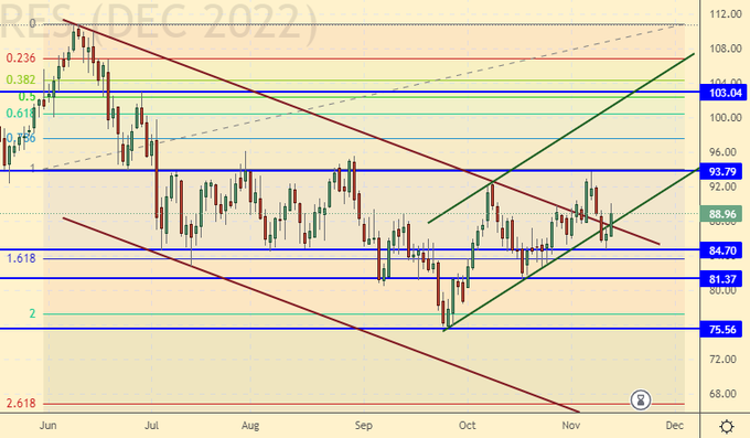 Сценарий роста: рассматриваем декабрьский фьючерс, дата экспирации 28 ноября. Продолжим рекомендовать покупки. Европе явно не будет хватать газа, пусть там хоть два раза будут заполнены все хранилища.