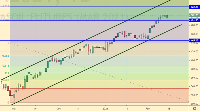 Сценарий роста: рассматриваем февральский фьючерс, дата экспирации 26 февраля. Для входа в рынок нам нужен откат. Гоняться за ценами не наш стиль. Находимся вне рынка.