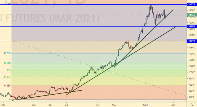 Сценарий роста: рассматриваем мартовский фьючерс, дата экспирации 22 февраля. Продолжаем ждать откат. В покупки с текущих уровней не заходим. Ищем возможности для торговли на других рынках.