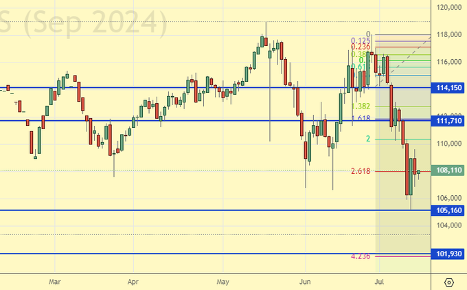 Сценарий падения: держим шорт. Желающие могут нарастить позицию при подъеме рынка к 112000. Там же можно и открыться вниз тем, кто не продал ранее.