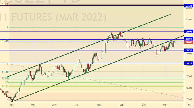 Сценарий роста: рассматриваем мартовский фьючерс, дата экспирации 28 февраля. Покупать будем только после роста выше 20.70. Текущий рост впечатления не производит.