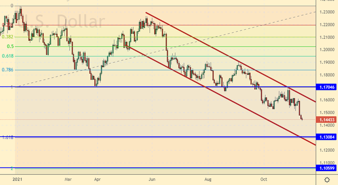 Сценарий падения: будем держать шорты, открытые три недели назад. Ходы к 1.1310 и 1.1060 возможны. Инфляция в США в 6.2% приближает вероятность повышения ставки не летом, а весной.