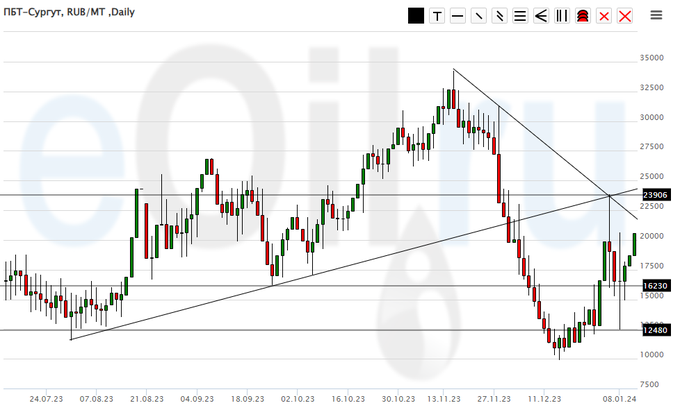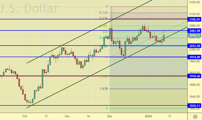 Сценарий роста: рассматриваем февральский фьючерс, дата экспирации 12 февраля. Пока быки неубедительны, однако, у них есть сейчас психологическое преимущество из-за событий в Красном море.