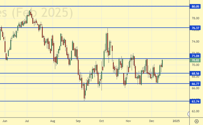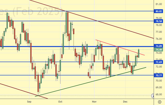 Сценарий роста: перешли на февральский фьючерс, дата экспирации 21 января. В случае роста выше 73.00 будем думать о покупках.