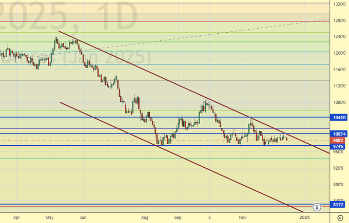 Сценарий роста: рассматриваем январский фьючерс, дата экспирации 14 января. Ничего нового. Не размышляем о покупках пока мы ниже 1025.0.