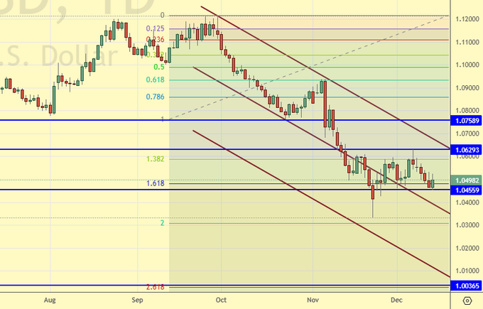 Рубль как-то пытается выживать в районе 105.00. Вряд ли на него будет напрямую влиять решение ФРС 18-го числа по ставке. Пара практически потеряла свою первостепенную значимость, уступив место паре юань/рубль. Теперь будем с 17-го декабря ориентироваться на индекс Мосбиржи в юанях.