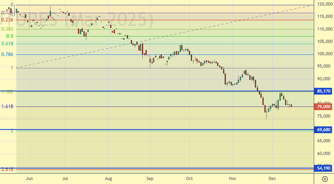 Продажа: нет. Кто в позиции от 84000 (с учетом перехода на новый контракт), перенесите стоп на 83500. Цель: 55000.