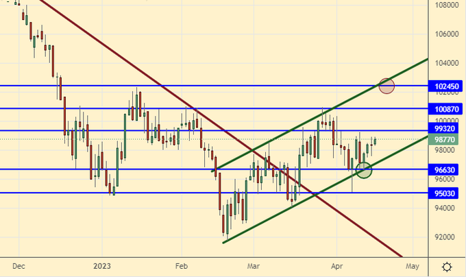 Поддержка – 96630. Сопротивление – 99320.