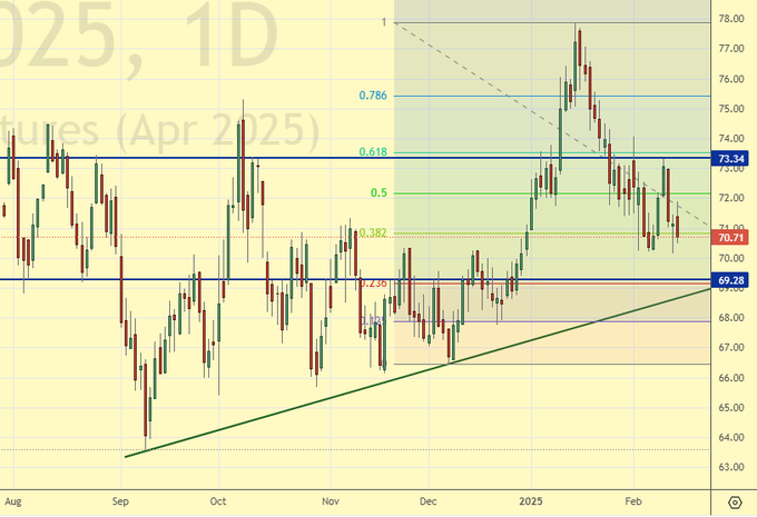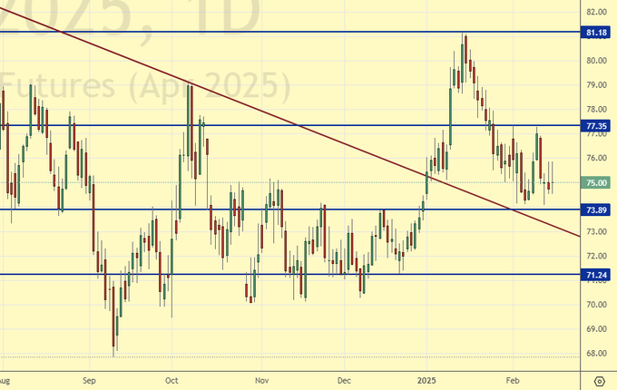 Цены на нефть продолжат извиваться вокруг уровня 75.00 словно гимназистка вокруг шеста. Трамп хочет вырвать Россию из объятий Китая. Если это произойдет, то два крупных добытчика нефти на планете могут вместе рассуждать сколько должна стоить нефть для Европы и Китая. Красиво. Мечтательно. Но есть еще ОПЕК. А там много жадных людей. И стоит ли нам доверять Вашингтону, где раз в четыре года происходит запрограммированный путч. Их так много, они так далеко, в них так много… силы.