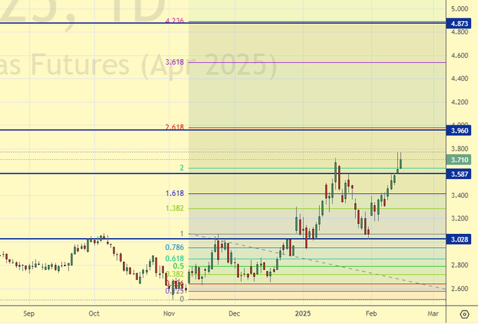Сценарий роста: перешли на апрельский фьючерс, дата экспирации 27 марта. Можно держать позиции. Пока подтверждаем, что США не для того Европу захватывали чтобы им дешевый газ продавать. Им бедным теперь и дернуться против Вашингтона нельзя, России для них больше нет.