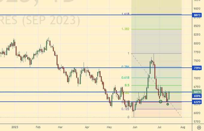 Будет зерновая сделка продлена или нет, не важно. Зерна, судя по новому прогнозу от USDA, в мире будет море. Другое дело, что и спрос постоянно подтягивается за предложением. Мы отмечали ранее, что данный сектор далек от насыщения и по мере того, как новые граждане в мире начинают привыкать к потреблению вкусного белого хлеба, спрос на пшеницу будет расти и не будет откатывать назад, что важно.