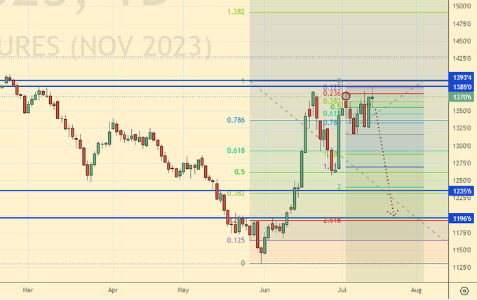 Сценарий падения: продажи можно рассмотреть после падения ниже 15000. Пока вне рынка.
