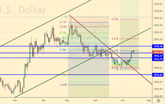 Сценарий роста: если будет откат к 1935 можно купить. Индекс доллара терял позиции на прошлой неделе, поэтому золото и подросло.