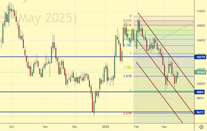 Сценарий роста: рассматриваем майский контракт, дата экспирации 14 мая. Покупки ни фундаментально, ни технически не интересны. Вне рынка.