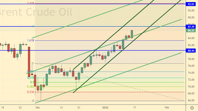 Рынок нефти достаточно нервно реагирует на инфляцию в США. Официально признан рост цен в 7% годовых, что является максимумом почти за 40 лет. При этом чиновники ФРС хоть и говорят о трех повышениях ставки в 2022-м году, но до дела пока не дошло, и когда дойдет не ясно. Может в марте, а может и снова придется подождать.