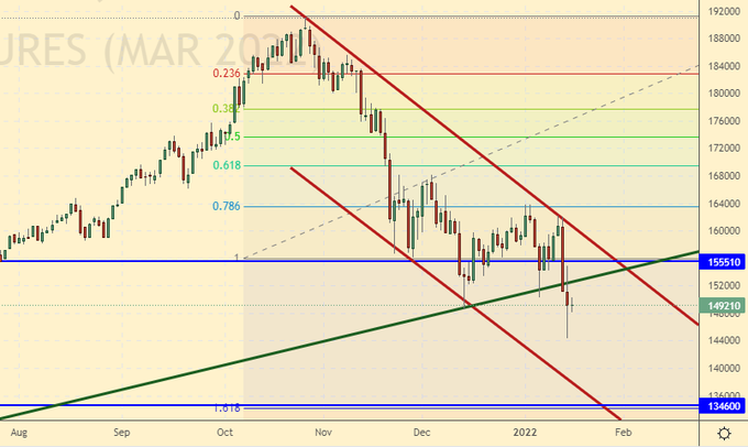 Сценарий падения: что будет делать Москва после того, как ей на следующей неделе на весь мир откажут в субъектности, вот в чем вопрос. И ответа ни у кого нет. Будем надеяться, что он есть у стратегов, затеявших в декабре историю с публичным ультиматумом Западу. А так как планы правительства нам не известны, то смотрим на техническую картинку, а по ней только шорт. Значит, будем продавать.