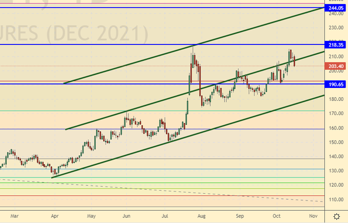 Покупка: нет. Кто в позиции от 192.00, держите стоп на 190.00. Цель: 244.00.