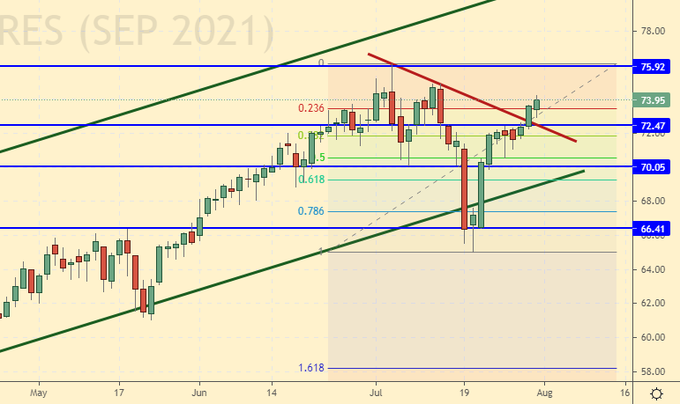 Покупка: нет. Кто в позиции от 67.50, перенесите стоп на 71.40. Цель: 80.00.