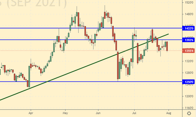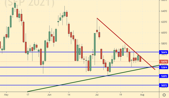Отметим, что если цены будут расти в августе, это может привести к раскручиванию спирали к максимальным значениям. Для пшеницы это уровень 1350.