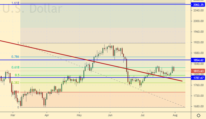 Сценарий роста: после того как Пауэлл в среду лишил доллар всяческой поддержки очень странно было бы видеть падение золота. Покупаем.