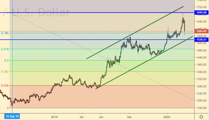 Продажа: при касании 1642. Стоп: 1668. Цель: 1360? Думать в случае прохода ниже 1540.