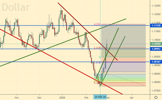 Сценарий падения: для доллара очень плохой рост евро. Однонаправленный и размашистый, с прошиванием уровней по Фибо. Продавать пока не будем.
