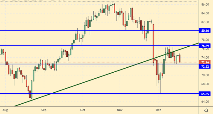 Покупка: сейчас. Стоп: 72.90. Цель: 77.00 (82.00). Кто в позиции от 74.10, держите стоп на 72.90. Цель: 77.00 (82.00).