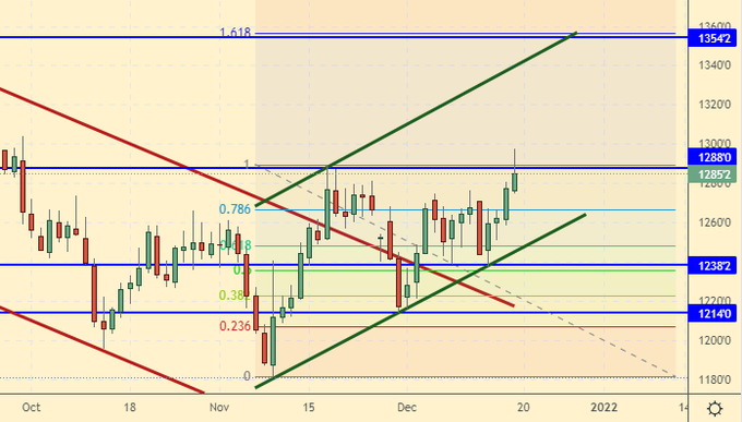 Скажем пару слов о товарных интервенциях. Вряд ли в будущем мы будем видеть боевой задор администрации Байдена, направленный на распродажу собственных нефтяных резервов. Возможно, что раз или два будут проведены показательные акции, но дальше этого дело не пойдет, так как в случае истощения стратегических резервов дело примет действительно опасный оборот, так как руки у спекулянтов будут развязаны. Если цены на газ взлетели в 10 раз, то почему бы не взлететь и ценам на нефть? Например, в момент полной и окончательной победы над коронавирусом следующим летом, о чем будет объявлено во всеуслышание. И не важно будет эта самая победа на самом деле достигнута или нет. Главное создать тренд и ажиотаж. И заработать конечно, на бедных автомобилистах.