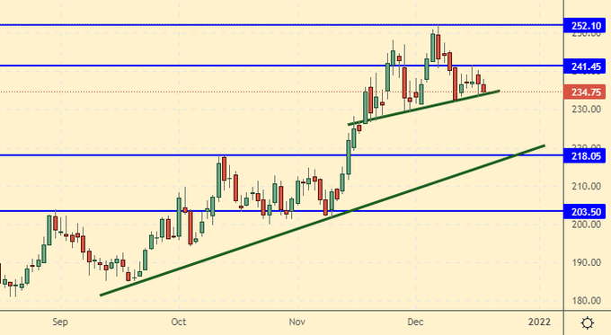 Продажа: нет. Кто в позиции от 245.0, держите стоп на 248.0. Цель: 200.0.