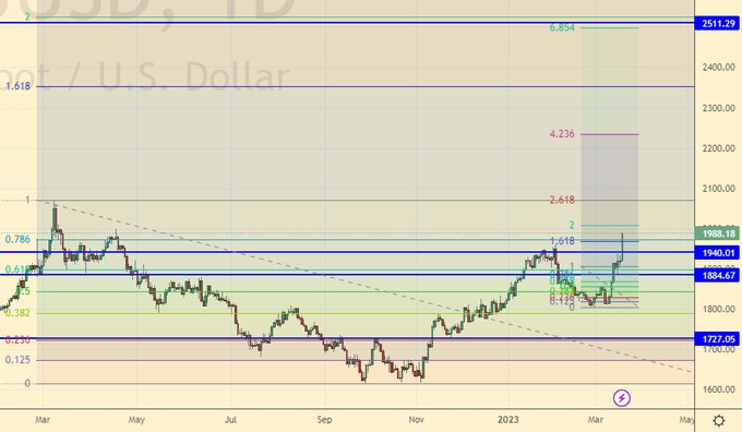 Покупка: сейчас и при откате к 1860. Стоп: 1830. Цель: 2500 (3000) долларов за тройскую унцию.