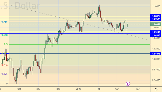 Сценарий роста: евро может уйти к 1.2000. Всё очень быстро меняется. И нам приходится тоже. Из-за банковского кризиса в США ФРС может не поднять ставку в среду. А даже если это и произойдет, то судьба доллара всё равно будет незавидной. Покупаем евро.
