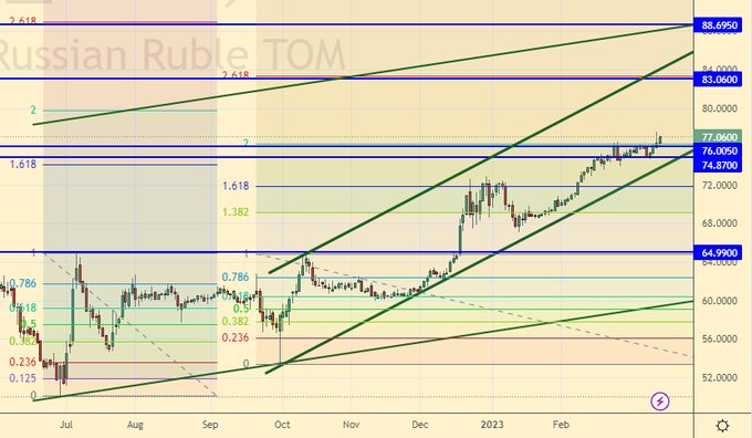 Проблемы с бюджетом РФ толкают доллар вверх. Рубль ведет себя несколько безвольно, подчиняясь ситуации. Нас ждут отметки 80.00, 84.00 и 88.00.