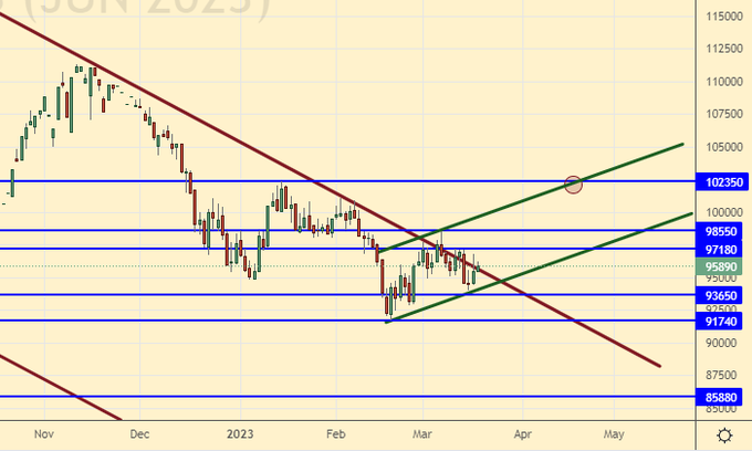 Продажа: сейчас. Стоп: 101000. Цель: 80000 (50000, далее 20000) пунктов. Кто в позиции от 106000, 103000, 101000 и 98000, держите стоп на 101000. Цель: 80000 (50000, далее 20000) пунктов.