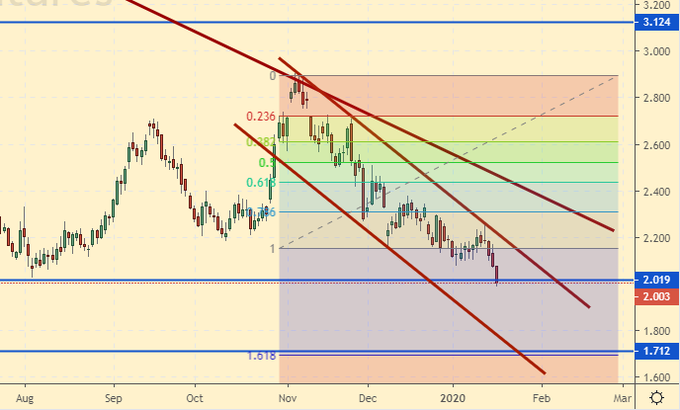 Сценарий роста: рассматриваем февральский фьючерс с датой экспирации 29 января. Наши надежды на рост не оправдались. Рынку грозит ход к 1.712. Там можно в очередной раз попытаться войти в покупку.