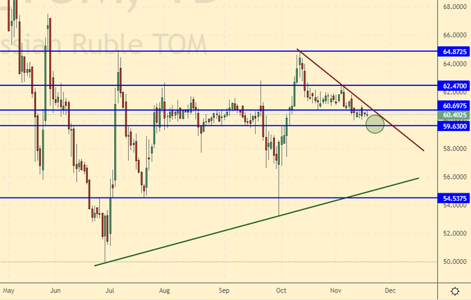 Покупка: при падении к 59.50. Стоп: 59.20. Цель: 74.00. Кто в позиции от 60.00 и 61.60, держите стоп на 59.20. Цель: 74.00.