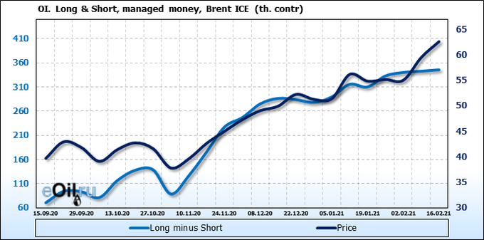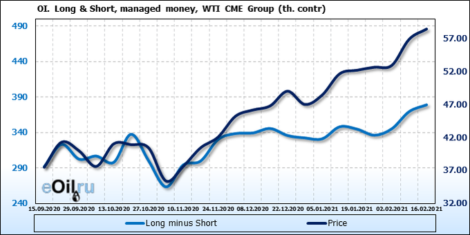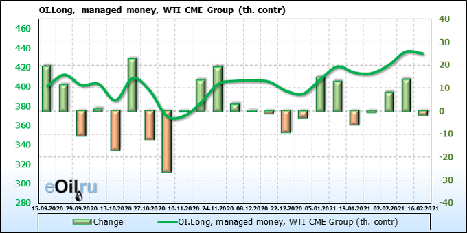 В отличии от Brent активность спекулянтов на рынке WTI оставляет желать лучшего. Очевидно, что часть позиций была закрыта в США перед длинными выходными на прошлой неделе, связанными с праздником День президентов (Presidents’ Day). Отметим, что сокращение коротких позиций было более сильным, чем длинных.