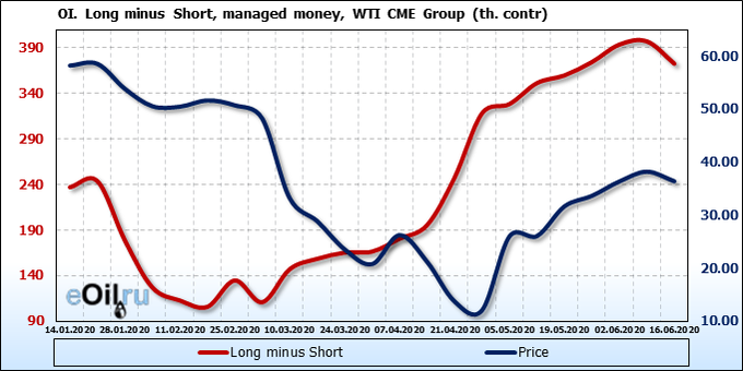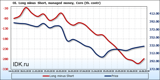 Смотрим на объемы открытого интереса управляющих. Вы должны учитывать, что это данные трехдневной давности (за вторник прошедшей недели), они же и самые последние из тех, что публикует биржа ICE.