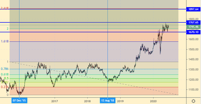 Покупка: нет. Можно пробовать на часовых таймфреймах после роста выше 1770. Цель: 1900.