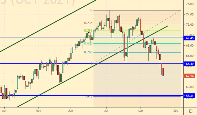 Сценарий роста: рассматриваем августовский фьючерс, дата экспирации 31 августа. Если рынок придет на 61.60 на следующей неделе, то покупать обязательно.
