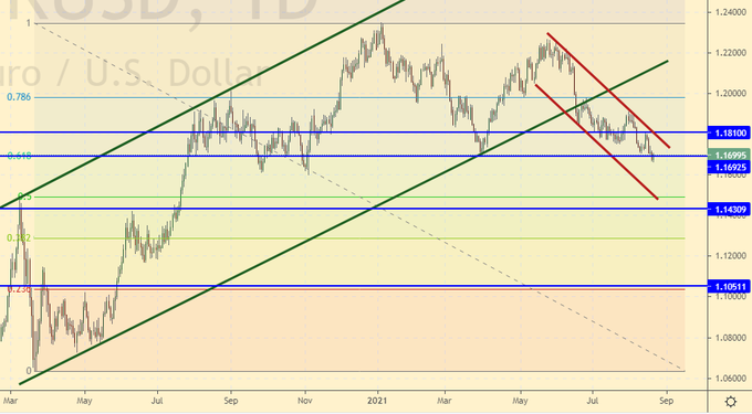 Сценарий падения: рынок уже просто молится на речь Пауэлла в Джексон-Хоуле в конце недели. Если она не оправдает надежд, то мы получим гэп вверх по паре в понедельник 30-го августа.