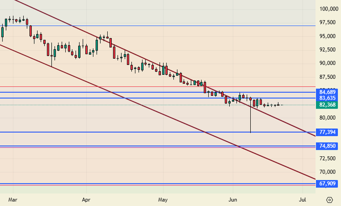 Покупка: в случае роста выше 85000. Стоп: 82000. Цель: 115000. Считайте риски!