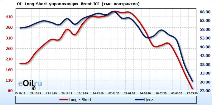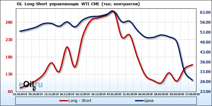 Ситуация не такая агрессивная как на Brent, спекулянты не готовы двигаться ниже 22.00, это видно по сокращению объемов позиций на продажу. Люди просто не верят в то, что цены могут быть ниже.